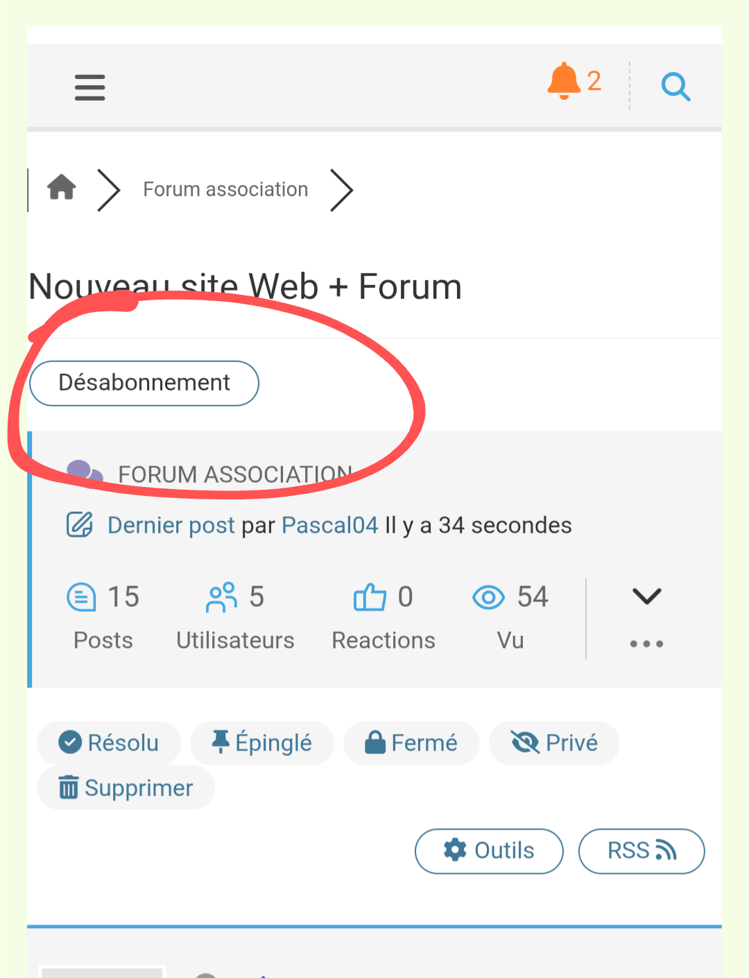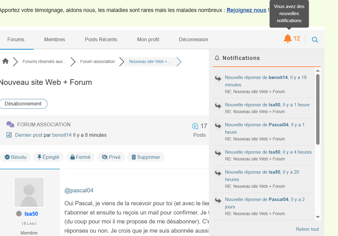 Oui Pascal, je viens de la recevoir pour toi (et avec le lien actif cette fois). C'est parce qu'il faut t'abonner et ensuite tu reçois un mail pour confirmer. Je te mets une capture d'écran du bouton (du coup pour moi il me propose de me désabonner). C'est pour tous les posts du sujet, réponses ou non. Je crois que je me suis abonnée aussi aux nouveaux sujets créés.